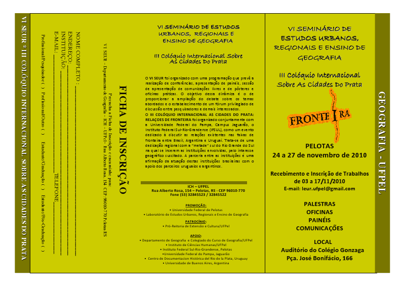 Algumas fotos durante a visita dos alunos da UFPel do curso de geografia participantes do VI SEUR (Seminário de Estudos Urbanos e Regionais ) e o III Colóquio das Cidades do Prata. Na ocasião a professora da UFPel Ana Lúcia Costa de Oliveira ministrou oficina na Unipampa.